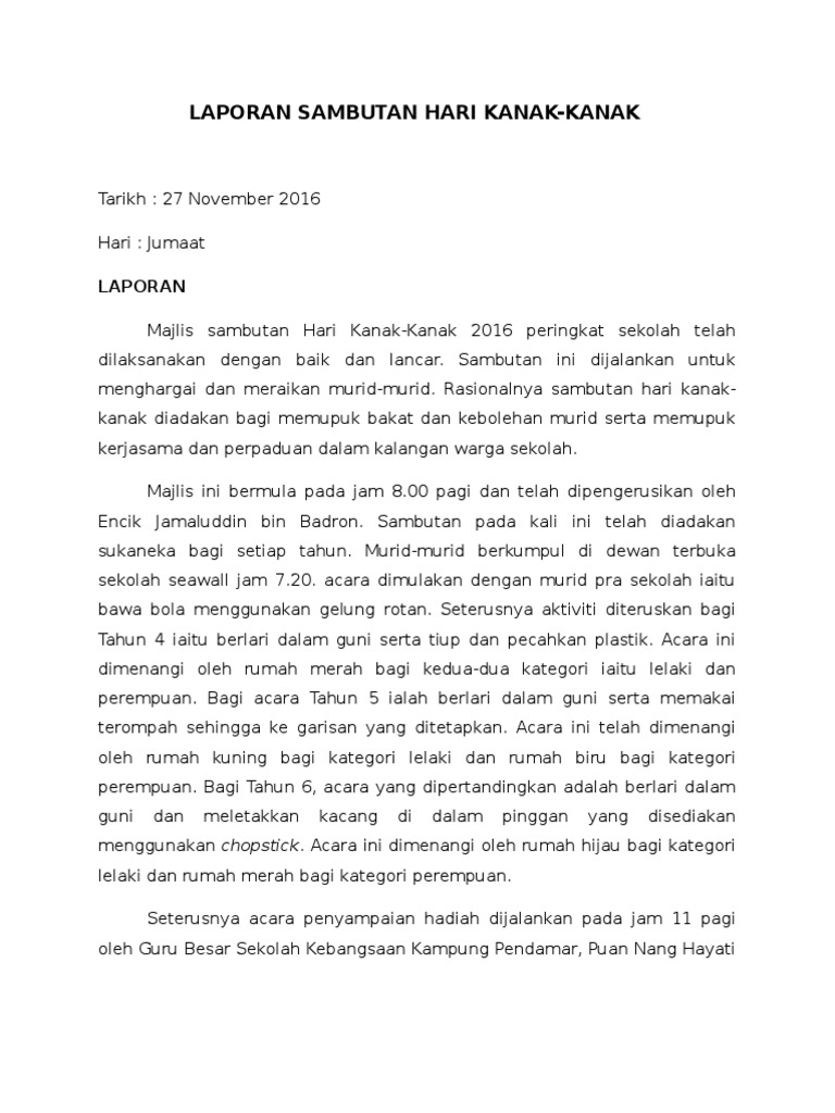 Doc Laporan Hari Kanak Kanak Sesi Pagi Wanee Alihan Academia Edu
